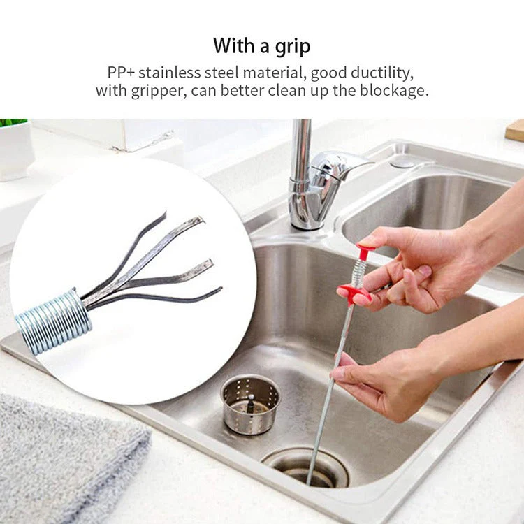 - Drain cleaning brush/spring widely used for cleaning bathrooms; kitchen; sinks; tubs; and dredging pipe; drain; sewers and other places clogged often. Multi-tooth drain efficiently catches hair; food and other blockages.
